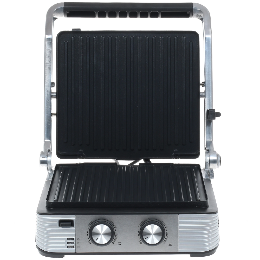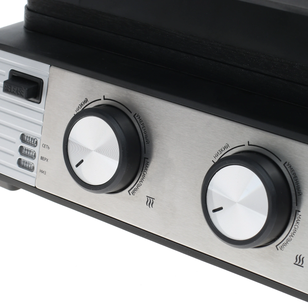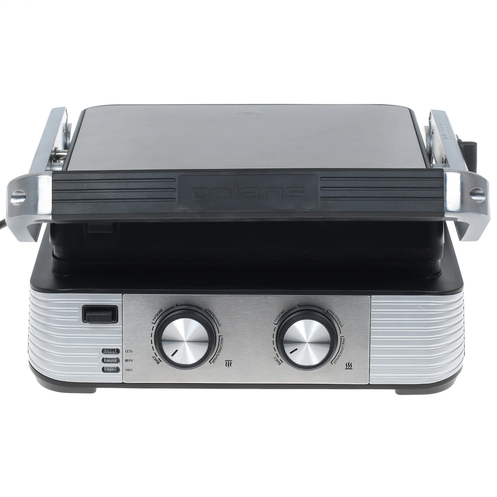 Особенностью гриля Polaris PGP 2202IQ Fry является раздельная регулировка температуры верхней и нижней поверхности. Это добавляет возможностей для воплощения кулинарных идей. Кроме того, есть несколько вариантов расположения верхней части: она может плотно прижиматься, фиксироваться на некотором расстоянии от готовящегося блюда (4 варианта высоты) и откидываться на 180°, превращая гриль в большую жаровню.