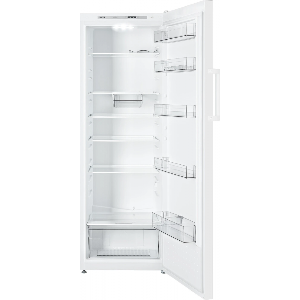 Холодильник выполнен в белом цветовом исполнении с наружной вертикальной ручкой-скобой белого цвета, которая подчеркивает эксклюзивный дизайн модели. В камере расположено 5 полок из закаленного стекла. На двери холодильника установлено 5 емкостей из ударопрочного пластика, в том числе емкость нижняя с ограничителем для бутылок и емкость верхняя с крышкой.