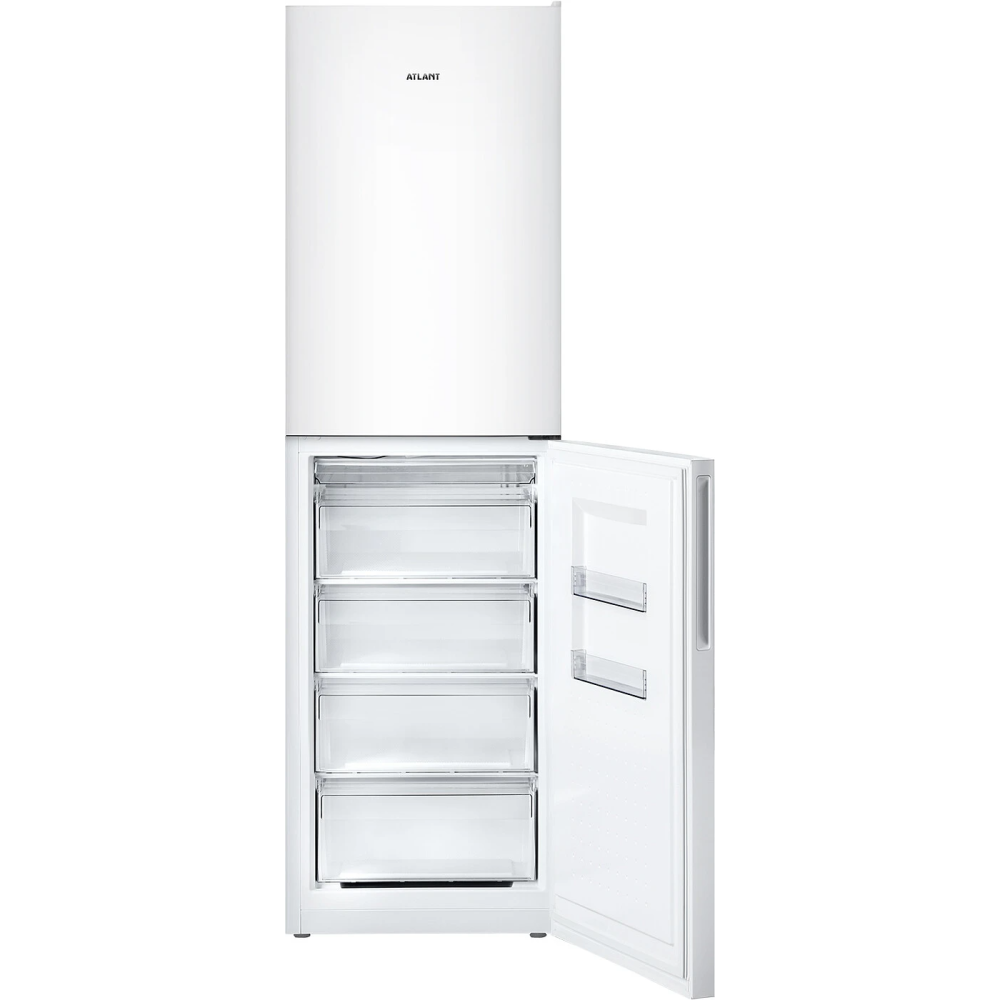 Холодильник с нижней морозильной камерой ATLANT ХМ 4623-101 оборудован камерой для охлажденных продуктов емкостью 182 л и отсеком для замороженных продуктов емкостью 159 л. В холодильной камере расположены четыре полки, две из которых регулируются по высоте, три полки на дверце и контейнер для хранения овощей. Морозильный блок включает в себя пять полок с прозрачными ящиками. Модель оснащена функцией No Frost для размораживания холодильной камеры и отсека для заморозки. Дверца оборудована вертикальной ручкой легкого открывания. На корпусе расположен индикатор включения и электронная панель управления. Устройство способно сохранить продукты при открытой двери в течение 20 ч.