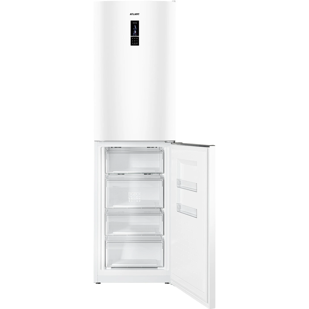Холодильник Атлант ХМ 4625-109-ND с системой No Frost обеспечивает производительность, равную 10 кг/сутки. Он оснащен двумя камерами объемом 222 и 159 л. В основном отсеке расположено пять полок и зона свежести с выдвижной корзиной, в морозильном ― четыре ящика. Конфигурацией предусмотрена LED-подсветка. Установлен стандартный компрессор. Энергопотребление достигает 318 кВтч. Уровень шума не превышает 42 дБ. Управление осуществляется за счет сенсорного блока с дисплеем. Доступна система индикации температуры и включения. При отсутствии питания оптимальные условия хранения продуктов поддерживаются в течение 15 часов. Дверцы открываются направо. Они дополнены доводчиком для плавности хода. Габариты устройства ― 206,8 х 66 х 59,5 см.