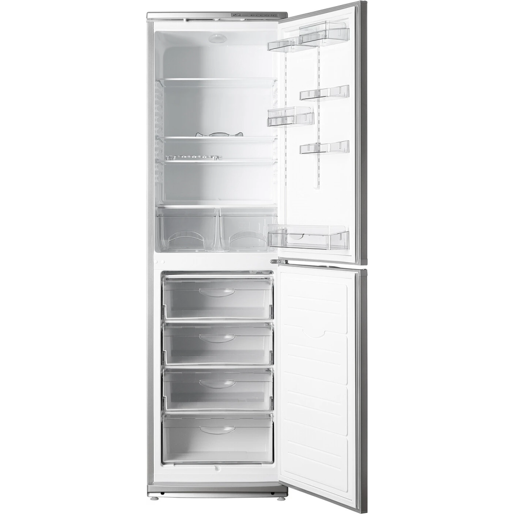 ATLANT ХМ-6025-080 двухкамерный холодильник, электромеханическое управление, 2 компрессора, класс A. В холодильнике предусмотрены световые индикаторы включения камер (холодильника), включения режима «Замораживание», повышенной температуры в морозильной камере. Звуковой сигнал включается при открытой свыше 30 секунд двери холодильной камеры. В холодильной камере используется автоматическая система оттаивания.