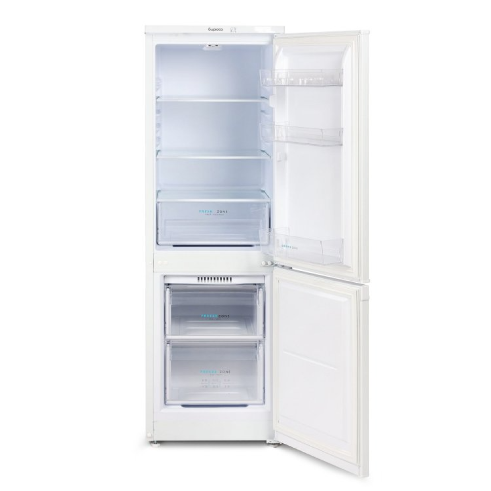 Узкий двухкамерный холодильник с нижней морозильной камерой в классическом дизайне и белом цвете. При отключении сохраняет температуру в течении 10 часов. LED освещение