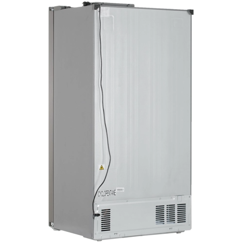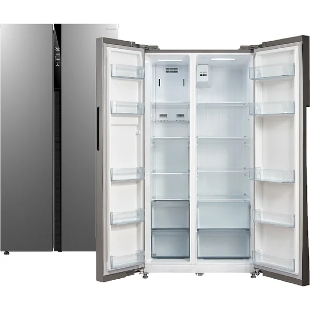 Холодильник с распашными дверями (Side by Side) Бирюса SBS 587 I в серебристом цветовом исполнении отличается удобным доступом как в холодильное отделение, так и во вместительный морозильник. Морозильная камера объемом 175 л в этой модели расположена сбоку. Внешний дисплей служит для отображения и настройки температуры в камерах. Для холодильного отделения можно задать температуру охлаждения от 2 до 8 °C, а для морозильной камеры – до -24 °C.