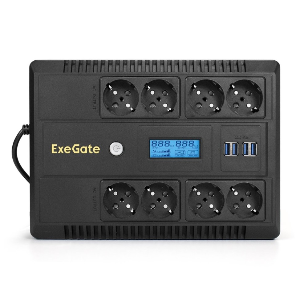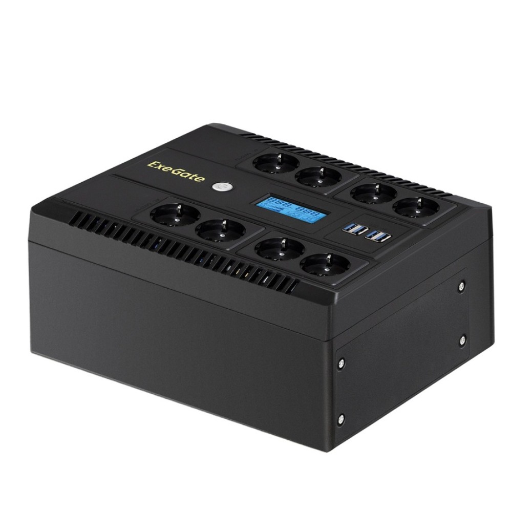 EX293858RUS, ИБП ExeGate NEO Smart LHB-1000.LCD. AVR.8SH.CH.RJ.USB 1000VA/650W, LCD, AVR, 8*Schuko, RJ45/11, USB, 4*USB-порта для зарядки
