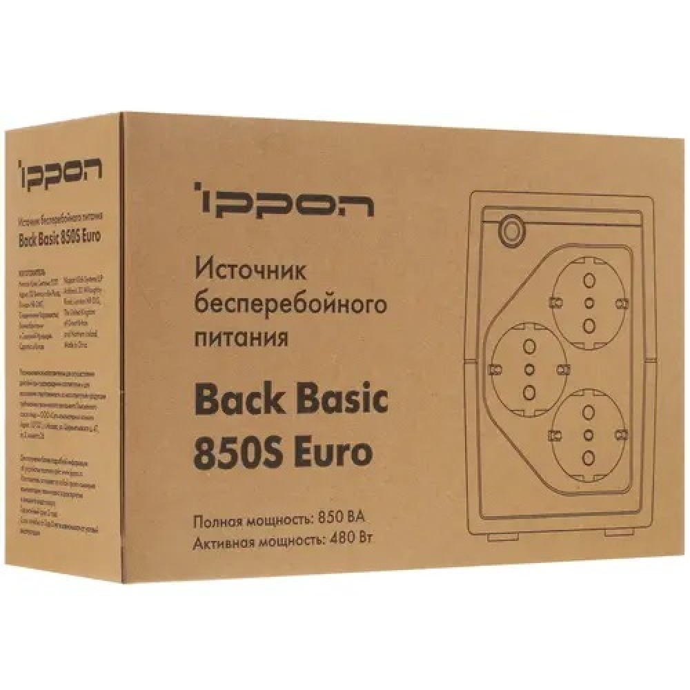 ИБП Ippon Back Basic 850S Euro выполнен в прочном корпусе и оснащен светодиодными индикаторами, отображающими ключевую информацию о работе. Для подключения предусмотрено 3 евророзетки. Также на корпусе есть выход USB-B. Благодаря первоклассным компонентам в основе конструкции данная модель отличается высокой надежностью и может обеспечить защиту от всплесков напряжения и импульсных помех. Источник питания работает от 1 батареи и не поддерживает ее замену. Для полной зарядки требуется 4 ч. Уровень шума в процессе работы достигает 40 дБ.