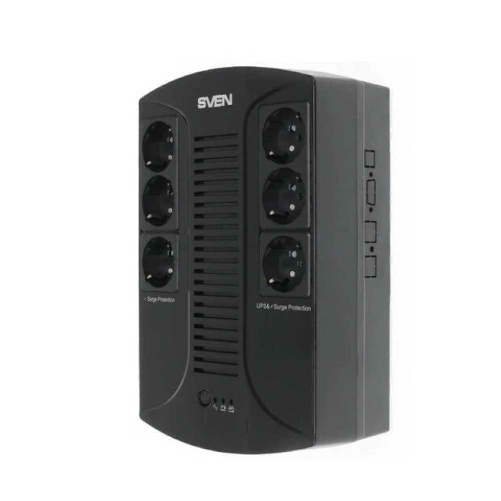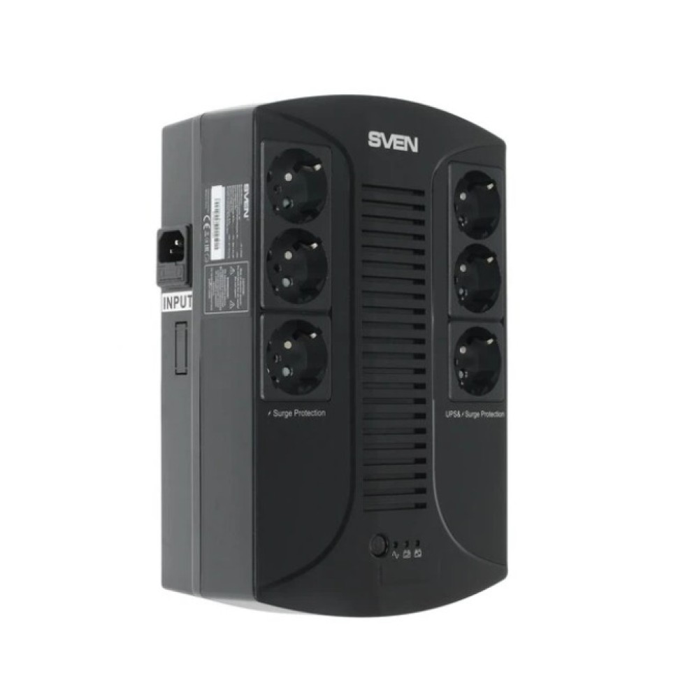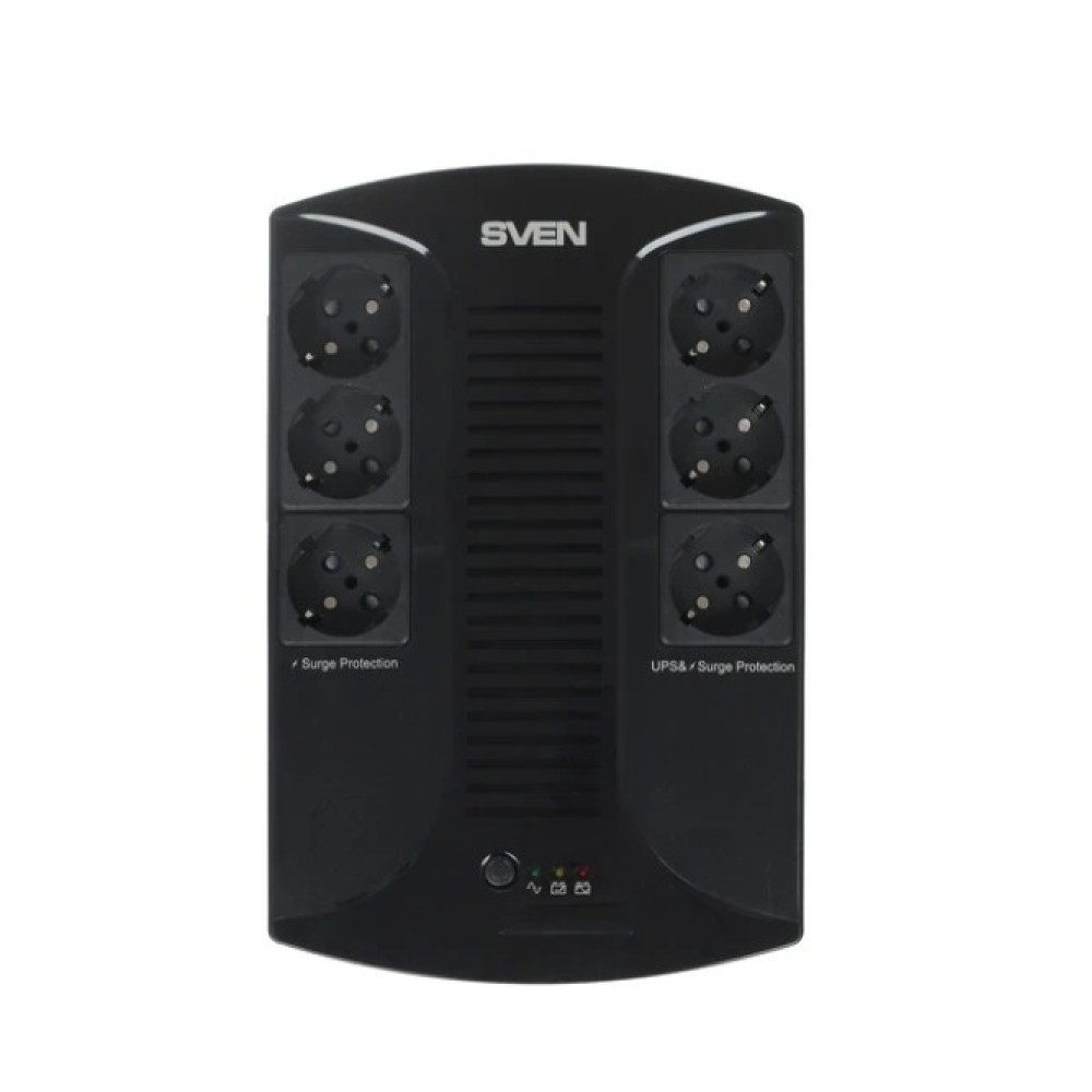 Модель SVEN UP-L1000E комплектуется источником питания с емкостью 9 А*ч и напряжением 12 В. Предусмотрена возможность замены батареи при ее непригодности работы или выходе из строя. Устройство оснащено шестью стандартными евророзетками CEE 7, также присутствуют три выходных разъема питания (UPS). О долговечности и надежности работы источника бесперебойного питания свидетельствует защита от перегрузки и система автоматической корректировки сетевого напряжения.