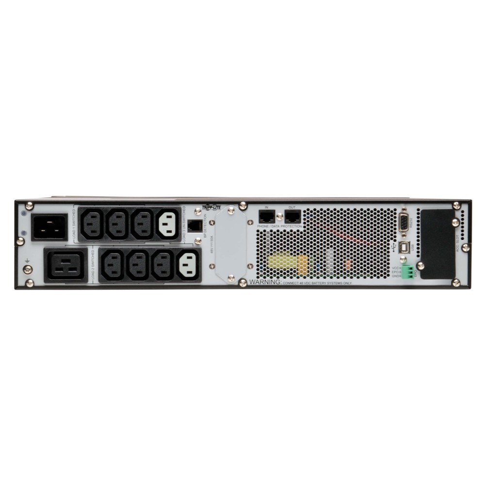 Tripp Lite SUINT2200LCD2U это ИБП мощностью 2200 ВА / 1980 Вт с 9 выходными разъемами (из них с питанием от батарей - 7), гарантирующий надежную и стабильную работу различному подключаемому периферийному оборудованию: персональный компьютер, офисная или бытовая техника, музыкальная или медицинская аппаратура. Он легко преобразует 1-фазное напряжение на входе в стабилизированное с отклонением не более ± 2 %, обеспечив защиту от перегрузки, защиту от высоковольтных импульсов, фильтрацию помех, защиту от короткого замыкания, защиту локальной сети, защиту телефонной линии. Для удобства мониторинга Tripp Lite SUINT2200LCD2U снабжен ЖК-экраном и звуковой сигнализацией. При этом он имеет размеры всего 441x88x496 мм и вес 23 кг.