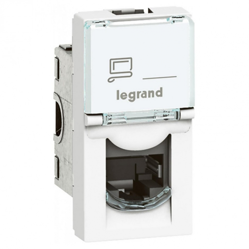 Legrand Mosaic 076573 — это экранированная информационная розетка RJ45 категории 6A, предназначенная для высокоскоростной передачи данных, IP-телефонии и PoE. Устанавливается в модульные рамки Mosaic, подходит для скрытого монтажа и кабель-каналов. Оснащена крышкой от пыли и полем для маркировки.