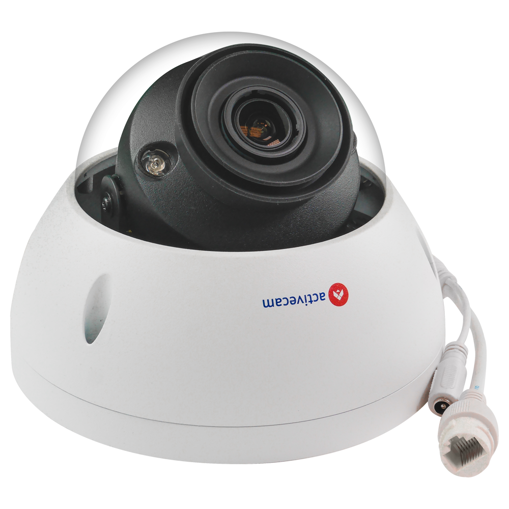 Видеокамера ActiveCam AC-D3183WDZIR5 выполнена в классическом купольном дизайне. Возможность использования устройства на улице обеспечивают защита вандалостойкого (IK10) корпуса от неблагоприятных погодных воздействий по стандарту IP67 и рабочие температуры от -45°C (встроенный обогреватель) до +60°C. Модель комплектуется моторизированной оптикой с автофокусом и трехосевым конструктивом крепления, что в сумме облегчает процесс монтажа и добавляет удобств при использовании. Для борьбы с разноконтрастным освещением, шумами и засветкой на «борту» присутствует набор функций улучшения изображения: Real WDR 120дБ, 3D DNR, BLC и HLC. Встроенная ИК-подсветка с дальностью до 50 м позволяет фиксировать происходящее при слабой освещенности или в полной темноте. Defog («Антитуман») помогает получать естественную передачу цветов и четкую видимость сцены при сложных погодных условиях (туман, дождь, смог и др.). ROI фокусирует внимание на важной области экрана (до 4-х зон), при этом способствуя оптимизации битрейта. Поддерживаются питание по сети Ethernet (PoE), прогрессивный видеокодек H.265, двусторонний звук и запись архива на карту памяти microSD. Также камера снабжена аппаратной видеоаналитикой: детектор лиц, обнаружение пересечения линии, оставленных / пропавших предметов, контроль области и аудиодетекция. ActiveCam AC-D3183WDZIR5 подойдет для охраны крупных объектов, где требуется получение наилучшего качества изображения с высокой детализацией.