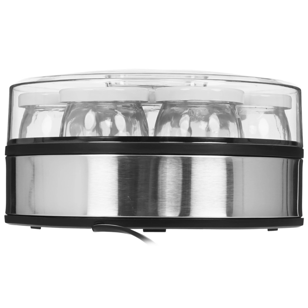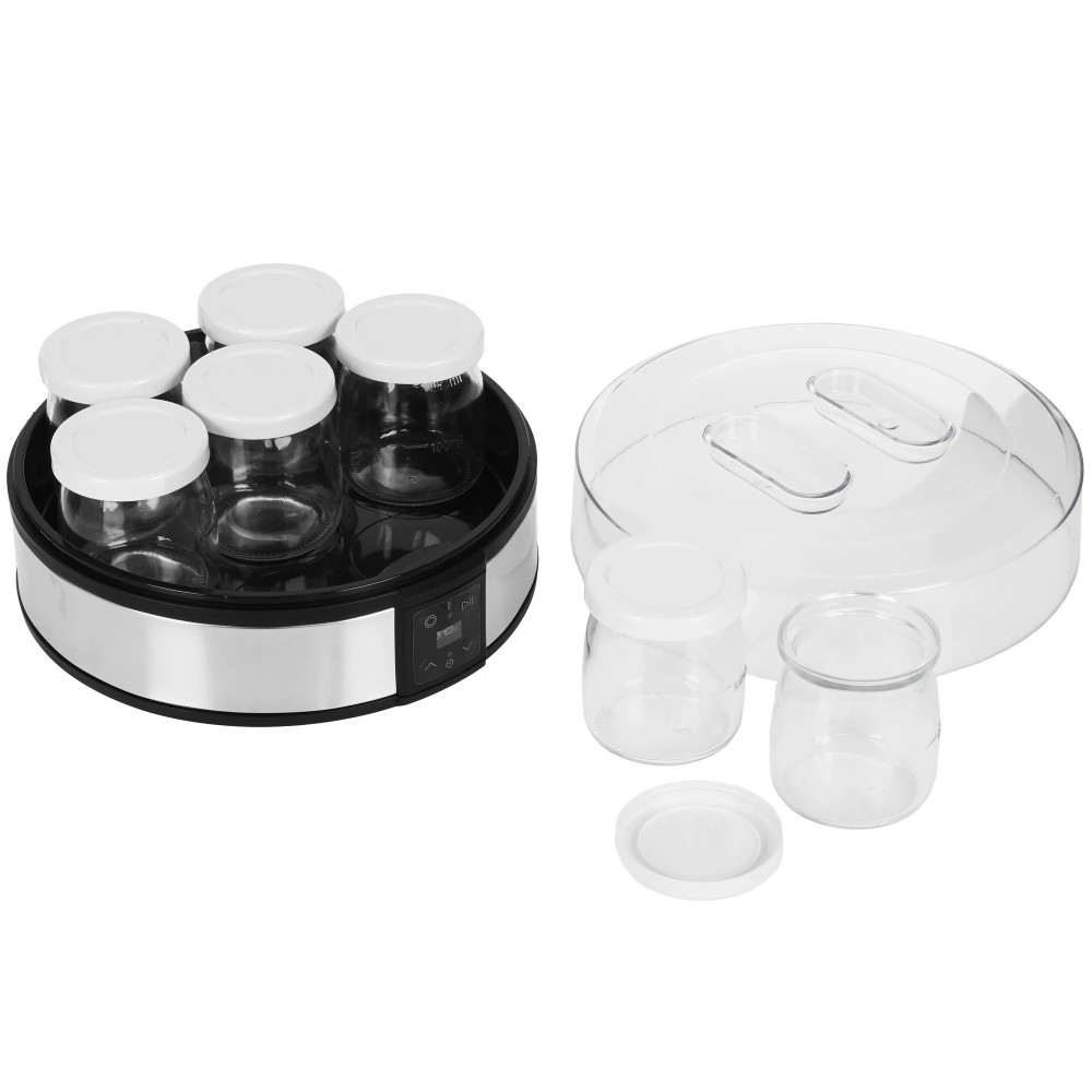 Йогуртница Kitfort КТ-6363 выполнена в круглом корпусе. Она оснащена 7 стеклянными баночками емкостью по 180 мл и пластиковыми завинчивающимися крышками. Экологически чистый материал не выделяет вредных веществ и сохраняет натуральные свойства продуктов. Для приготовления йогурта необходимо сделать смесь из закваски и молока.