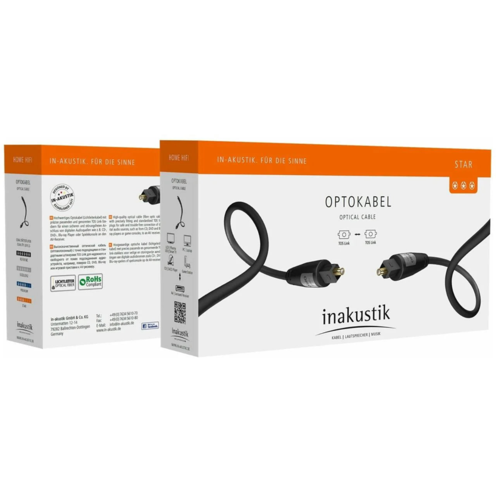 Кабель межблочный оптический, пластиковое оптоволокно, гибкий, Toslink Toslink. Длина 0,75м. Производитель: Inakustik (Германия). Гарантия 12 мес.
