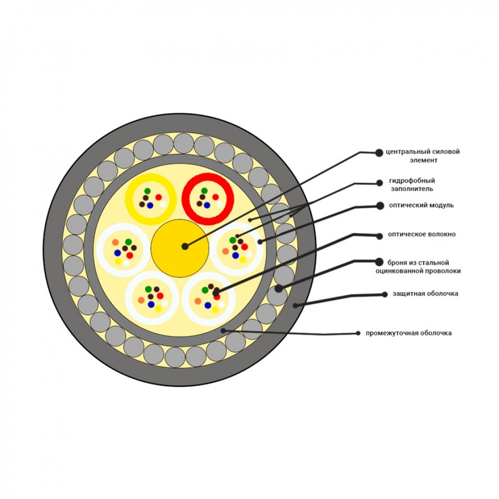 Кабель оптоволоконный, СКО, ОКБ-0,22-8П-8кН, предназначен для прокладки в грунт на основе модульной конструкции.