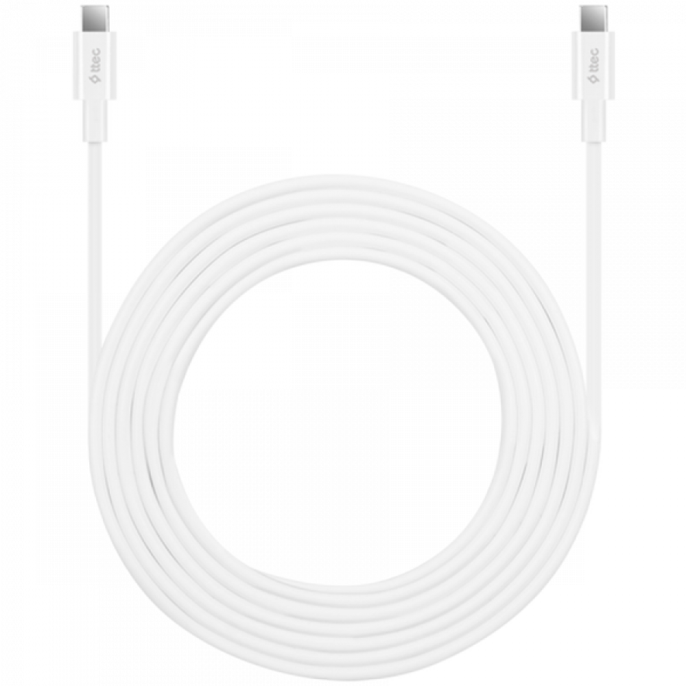 Кабель ttec Type-C – Type-C длиной 30 см предназначен для быстрой зарядки и передачи данных с мощностью до 65 Вт. Идеален для подключения современных ноутбуков, смартфонов и других устройств с USB Type-C. Кабель выполнен в белом цвете, компактный и удобный для повседневного использования