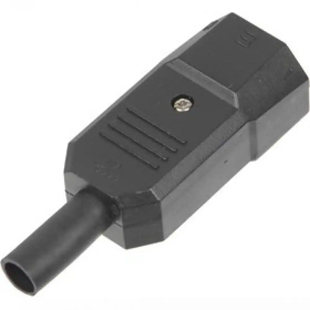 Разборная прямая вилка IEC 60320 C14 предназначена для самостоятельного монтажа кабелей питания. Применяется для подключения серверов, ИБП, сетевого и компьютерного оборудования к источнику питания через стандартный разъем. Поддерживает нагрузку до 10 ампер и напряжение до 250 вольт. Корпус изготовлен из термостойкого полиамида, обеспечивающего надежную изоляцию и прочность. Удобна в установке и обслуживании. Черный цвет корпуса делает вилку универсальной для большинства типов техники