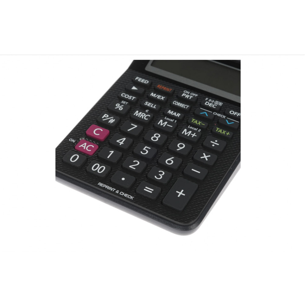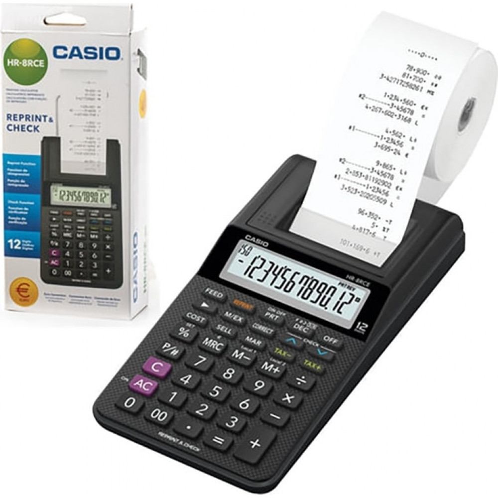 Калькулятор настольный Casio HR-8RCE-BK-W-EC предназначен для бухгалтерских и финансовых расчётов, обеспечивая удобство и точность в повседневной работе. Модель выполнена в строгом пластиковом корпусе чёрного цвета и поддерживает функцию печати, что делает её особенно полезной при ведении документации. Устройство поддерживает 12-разрядный двустрочный дисплей и обладает широким набором функций, включая вычисление процентов, расчёт прибыли (затраты, продажа, маржа), расчёт налогов, десятичный селектор, пересчёт валют, а также ввод двойного нуля одной клавишей. Калькулятор может работать как от батареек типа AA, так и от сети 220 В. Автоматическое отключение позволяет экономить заряд. Устройство не сертифицировано для использования на ЕГЭ. Casio HR-8RCE-BK-W-EC — это надёжный инструмент для эффективной офисной или бухгалтерской работы.