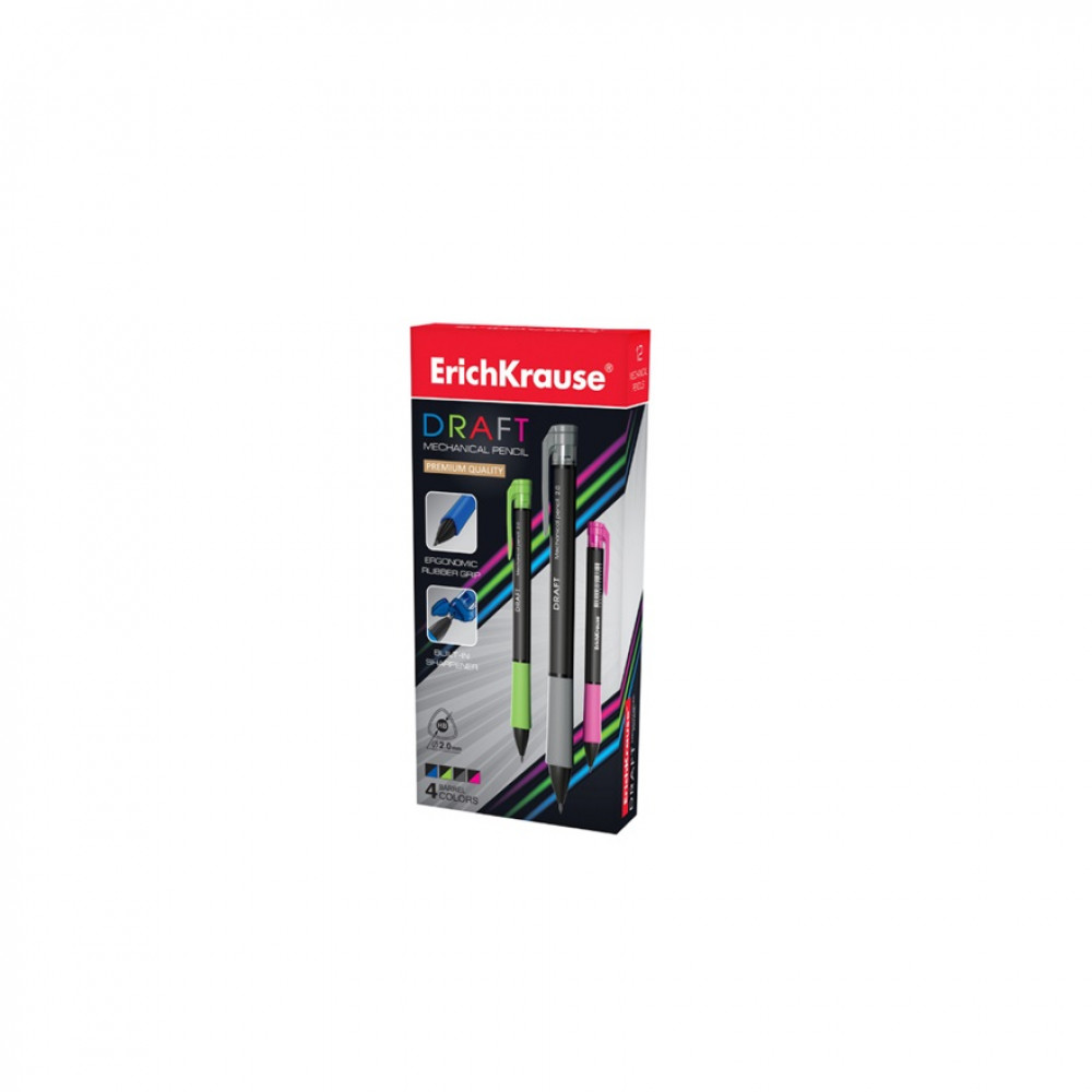 Механический карандаш эргономичной треугольной формы с убирающейся цангой и удобной профилированной грип-зоной из резины. Оснащен точилкой. Твердость HB. Диаметр грифеля – 2.0 мм.