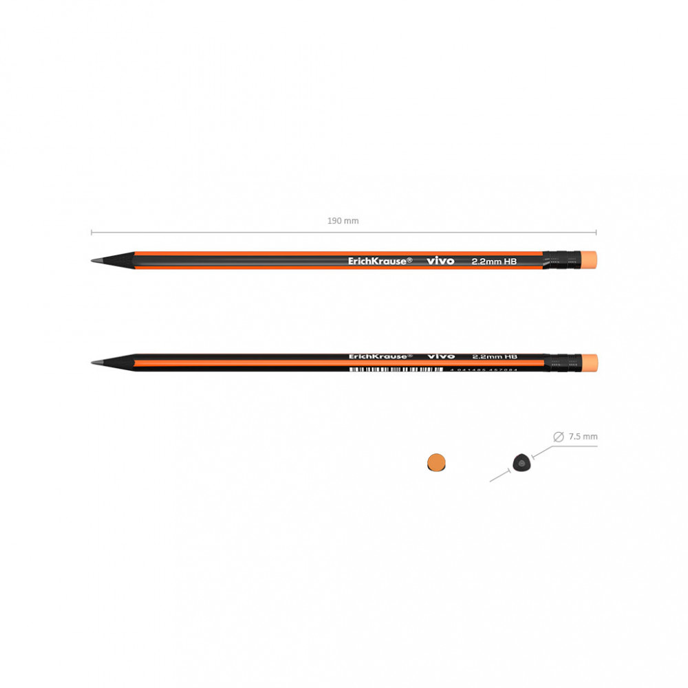 Эргономичный трехгранный чернографитный карандаш с ластиком из отборной тонированной древесины, твердость НВ. Специальная пропитка древесины и сплошная проклейка грифеля обеспечивает высокую ударопрочность. Мягкая древесина и идеальная центровка грифеля гарантируют легкую заточку с экономным расходом карандаша.