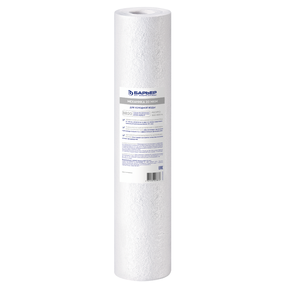Катридж БАРЬЕР "Механика 20 мкм для холодной воды" задерживает механические примеси более 20 мкм (песок, ржавчину и другие механические примеси).