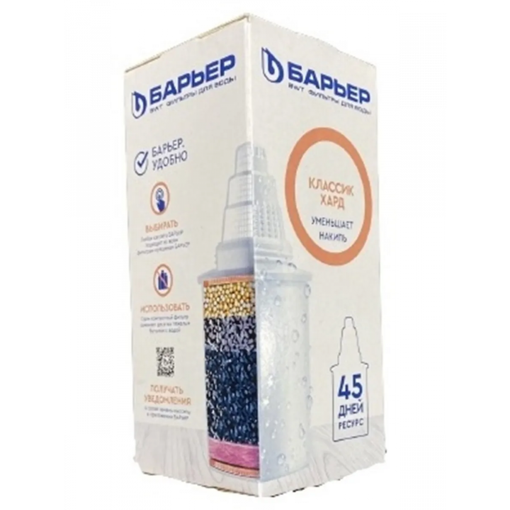 Сменная кассета БАРЬЕР Классик Хард К261Р20, размером 64×64×146 мм, предназначена для фильтров-кувшинов. Эффективно снижает жёсткость воды, устраняет хлор, тяжёлые металлы и накипь. Рекомендуется для использования в регионах с повышенным содержанием солей кальция и магния. Ресурс — до 350 л, совместимость с фильтрами БАРЬЕР.