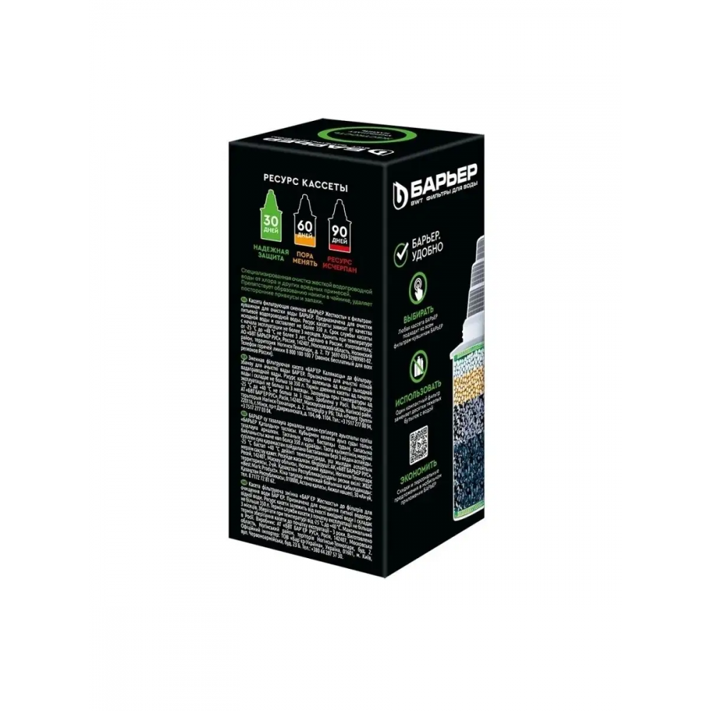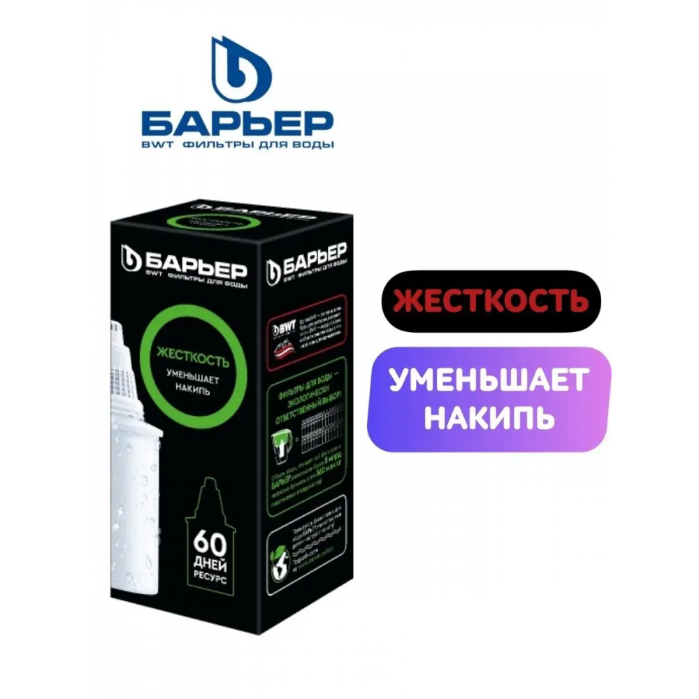 Сменная кассета БАРЬЕР Жесткость К271Р00, размером 64×64×146 мм, предназначена для фильтров-кувшинов. Эффективно снижает жёсткость воды, устраняет хлор, тяжёлые металлы и накипь. Рекомендуется для использования в регионах с повышенным содержанием солей кальция и магния. Ресурс — до 350 л, совместимость с фильтрами БАРЬЕР.
