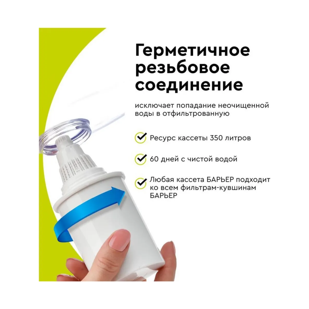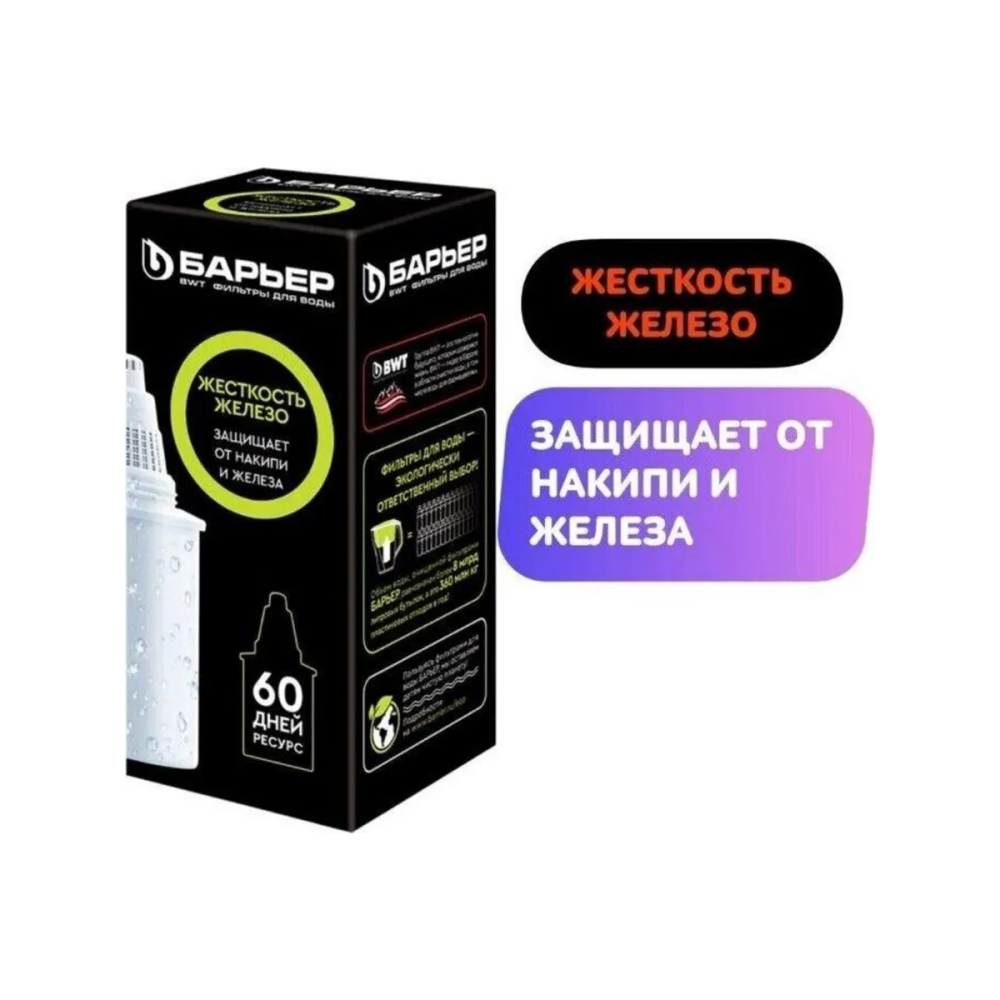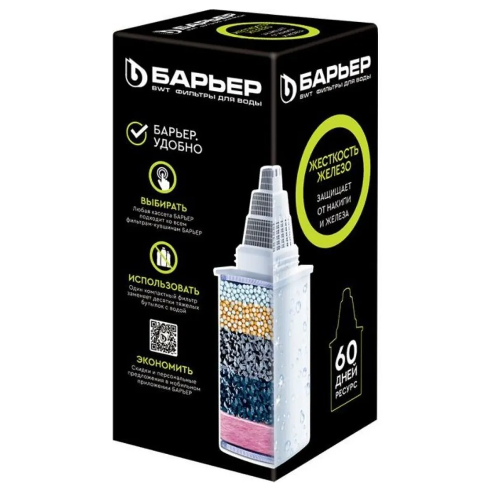 Сменная кассета БАРЬЕР Комплекс К301Р12, размером 64×64×146 мм, предназначена для фильтров-кувшинов. Комплексная формула эффективно снижает жёсткость воды, удаляет железо, хлор, тяжёлые металлы и накипь. Ресурс — до 350 л. Совместима с фильтрами БАРЬЕР, подходит для использования в регионах с повышенным содержанием солей и железа.