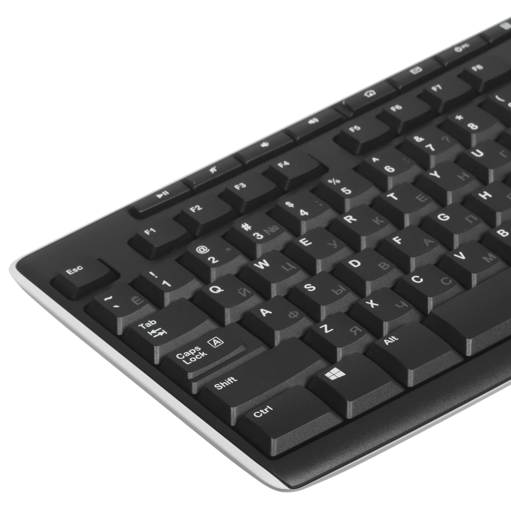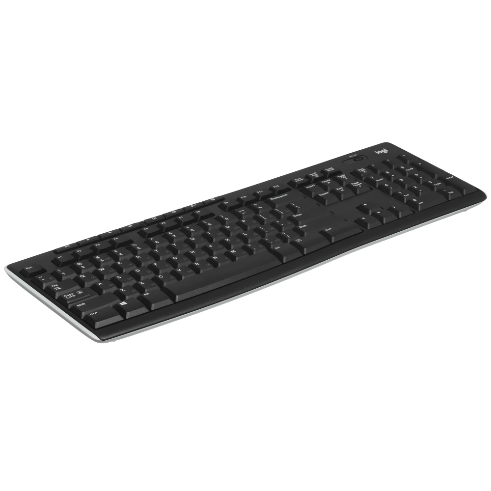 Клавиатура Logitech Wireless Keyboard K270 имеет классическую раскладку – 112 кнопок, из которых 8 являются дополнительными функциональными клавишами. Черный корпус изготовлен из пластика. В основе модели лежит мембранный механизм. Беспроводная связь обеспечивает подключение к компьютеру. Небольшой приемник Logitech Unifying использует интерфейс USB. Для быстрого функционирования устройства не понадобится наличие дополнительного программного обеспечения.