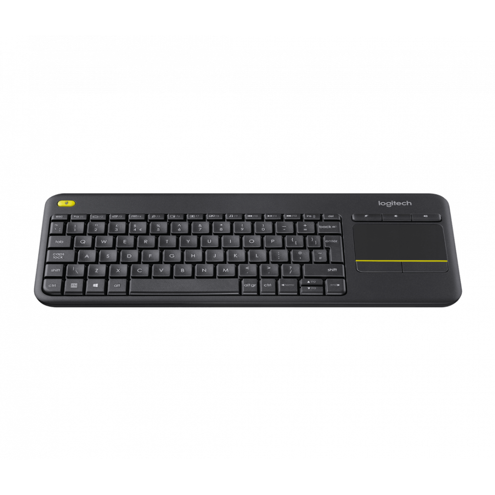 Logitech Wireless Touch Keyboard K400 Plus – это беспроводная клавиатура сенсорного типа. Отличительной особенностью представленной модели является ее компактность. Она оборудована полноразмерной раскладкой и оснащена сенсорной панелью. Существенным плюсом этой модели является бесшумность ввода – нажатие на кнопки происходит плавно и мягко. Этому способствует мембранная конструкция клавиш. Их общее количество составляет 87. Также агрегат оснащен 5 дополнительными кнопками.