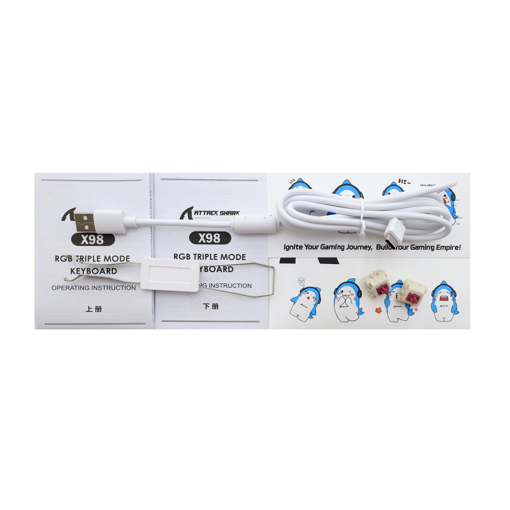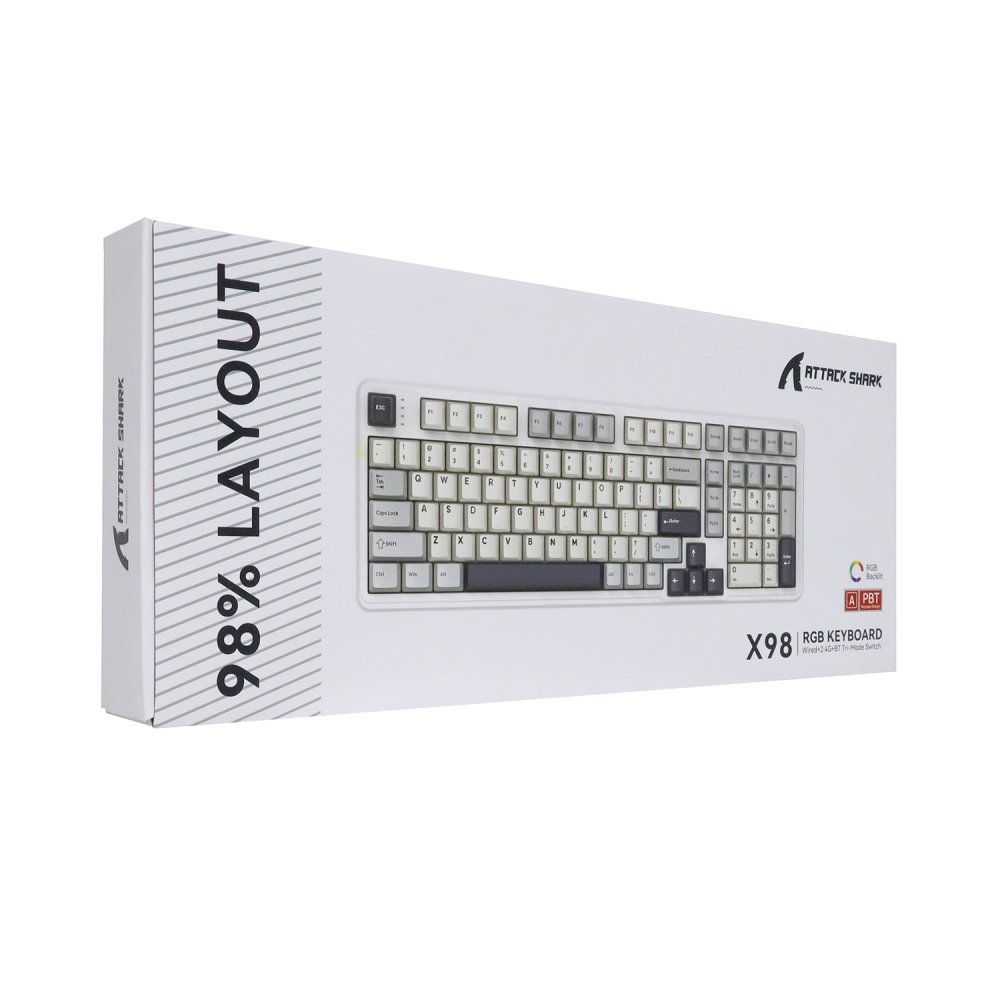 Клавиатура проводная + беспроводная Attack Shark X98 получила RGB-подсветку по области кейкапов. С ней вы сможете настраивать разные сценарии свечения: от статичного до мигания и переливов. Часть клавиш можно запрограммировать на выполнение последовательности действий, чтобы потом запускать их одним нажатием. Клавиатуру можно подключить одновременно к четырем устройствам по Bluetooth или через кабель USB Type-A.