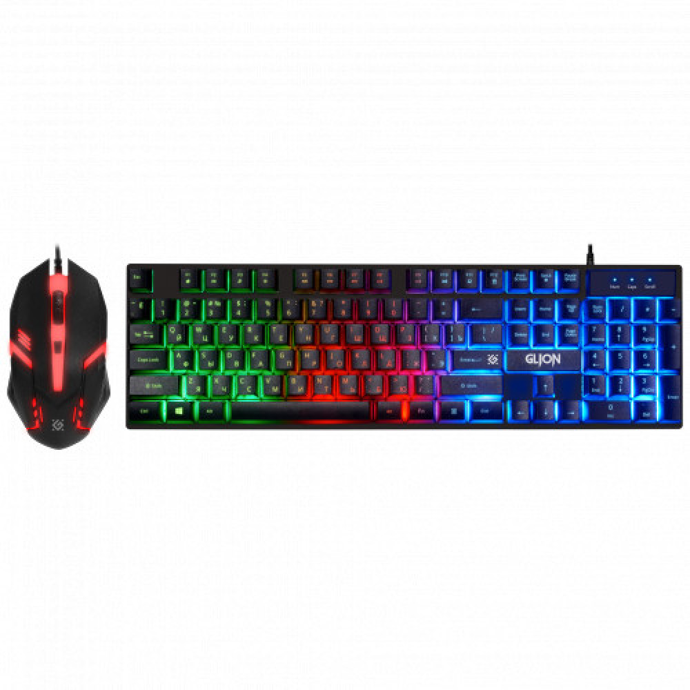 Комплект из игровой проводной клавиатуры Defender GLION C-123 и оптической проводной мыши станет отличным оснащением вашего компьютера. Оба устройства выполнены в едином стиле, смотрятся эффектно и агрессивно благодаря наличию светодиодной подсветки. Конструкция клавиатуры полноразмерная, с клавишами мембранного типа, которые легко и мягко нажимаются. Работать с такой клавиатурой также комфортно, как и играть. Вы сможете набирать текст, работать с документами, обрабатывать файлы и делать многие другие операции.