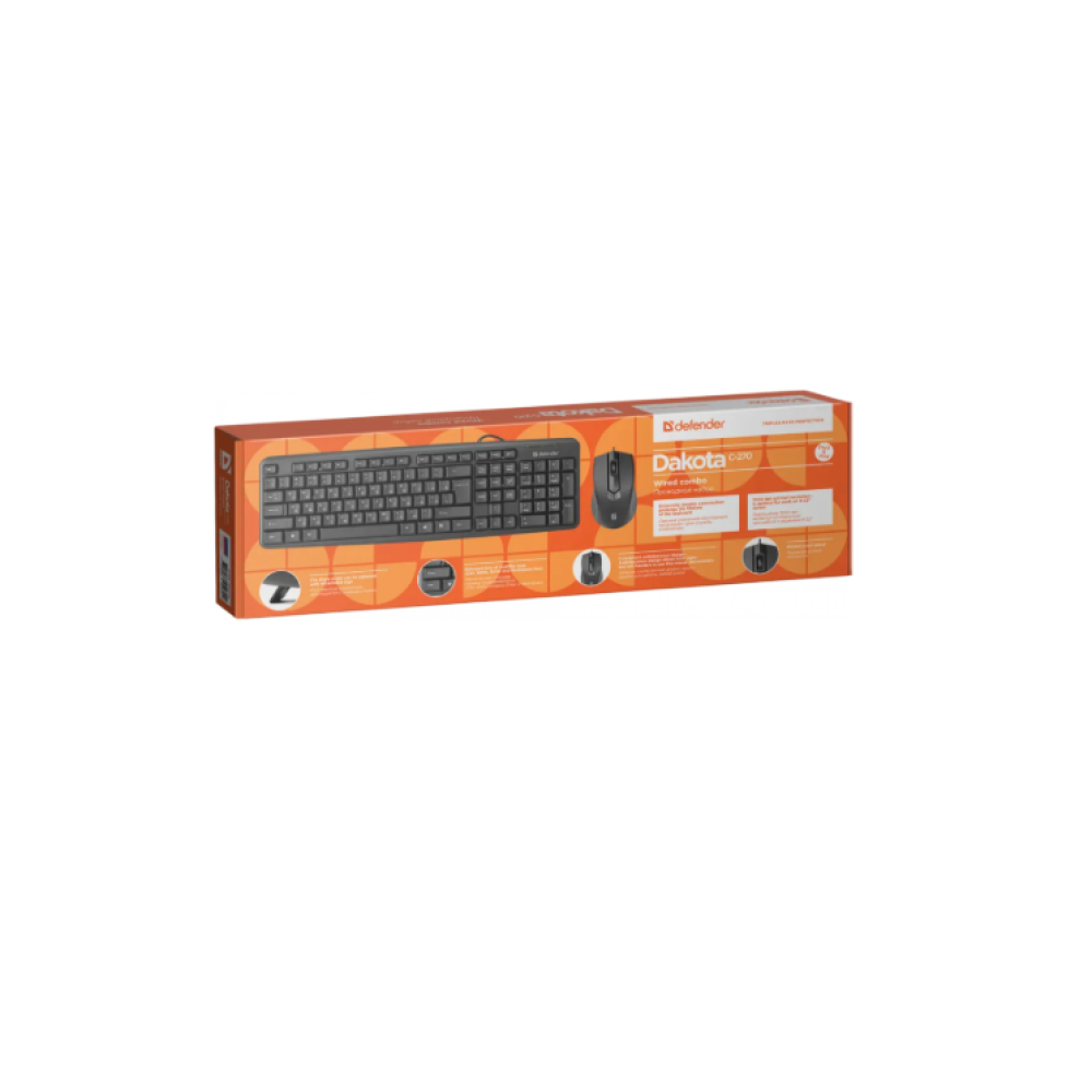 Проводной набор Клавиатура + Мышь Nomad Dacota C-270. Прочная усиленная конструкция клавиатуры. Полная раскладка: 104+3 шт. клавиши. Кнопки управления питанием компьютера. Угол наклона клавиатуры регулируется. Удобная симметричная форма мыши. Оптимальное разрешение 1000 dpi. 3 кнопки мыши: 2 + колесо-кнопка, длина кабеля мыши 1,5+-5% м