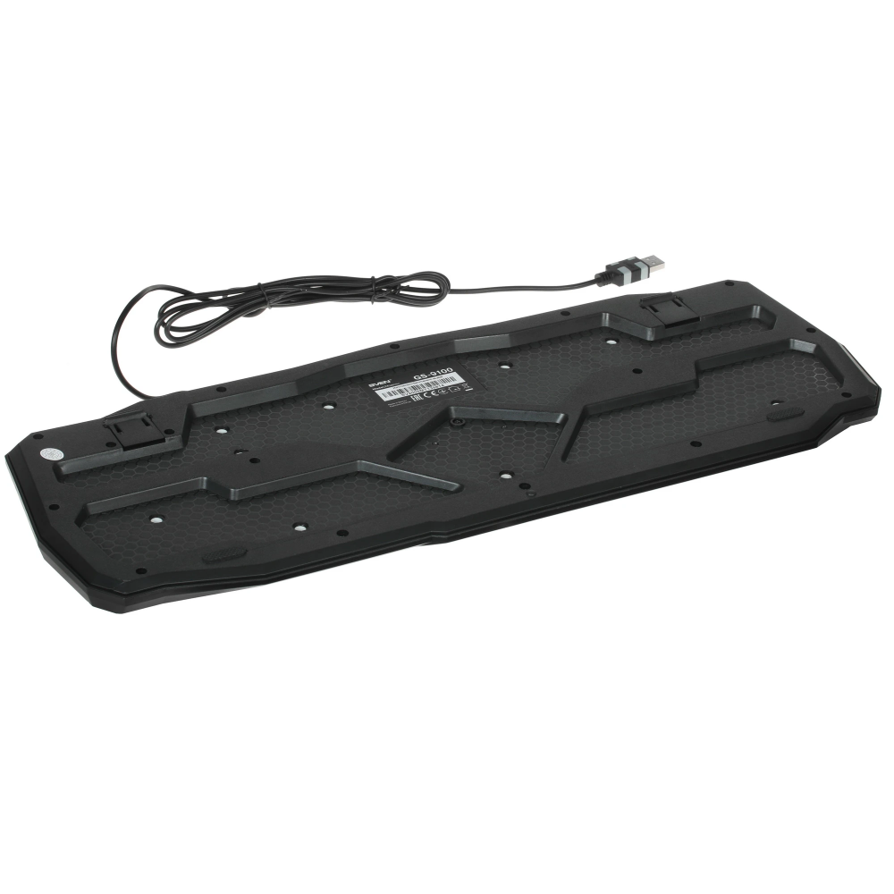 Высоту клавиатуры, состоящей из 104 кнопок, можно регулировать для удобства владельца. Также необходимо знать, что устройство защищено от попадания влаги. Клавиатура дополнена динамической подсветкой. Кнопки функций и цифровой блок делают ее удобной для работы в офисных приложениях, а не только для прохождения игр. Ресурс клавиш рассчитан на 20 млн нажатий.