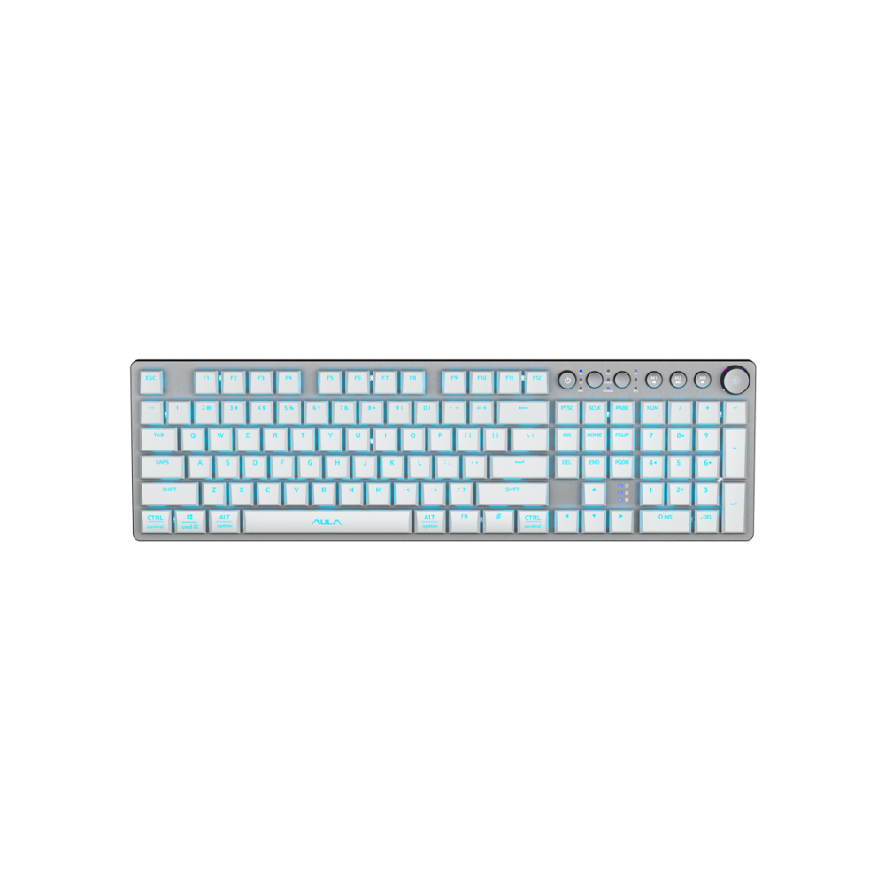 AULA F2090 - низкопрофильная механическая клавиатура с тремя вариантами подключения: проводное, радиоканал и Bluetooth.