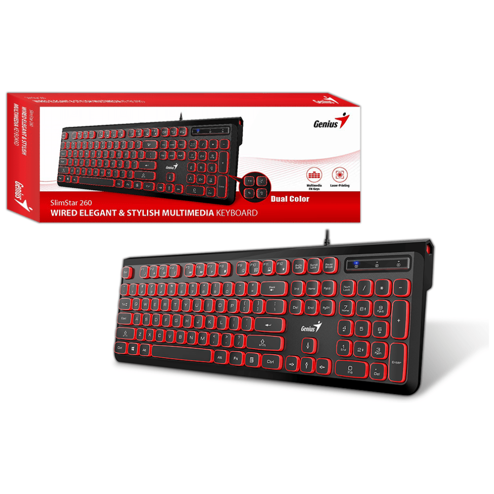 Проводная клавиатура Genius SlimStar 260 предусматривает цифровой блок, которым удобно пользоваться при обработке больших массивов числовых данных. Клавиша функций Fn позволит управлять при помощи устройства мультимедийными приложениями компьютера. Корпус из пластика не собирает на себе отпечатки пальцев и всегда выглядит ухоженно. Для подключения к компьютеру достаточно подсоединить к нему клавиатуру при помощи 1.5-метрового кабеля с интерфейсом USB.