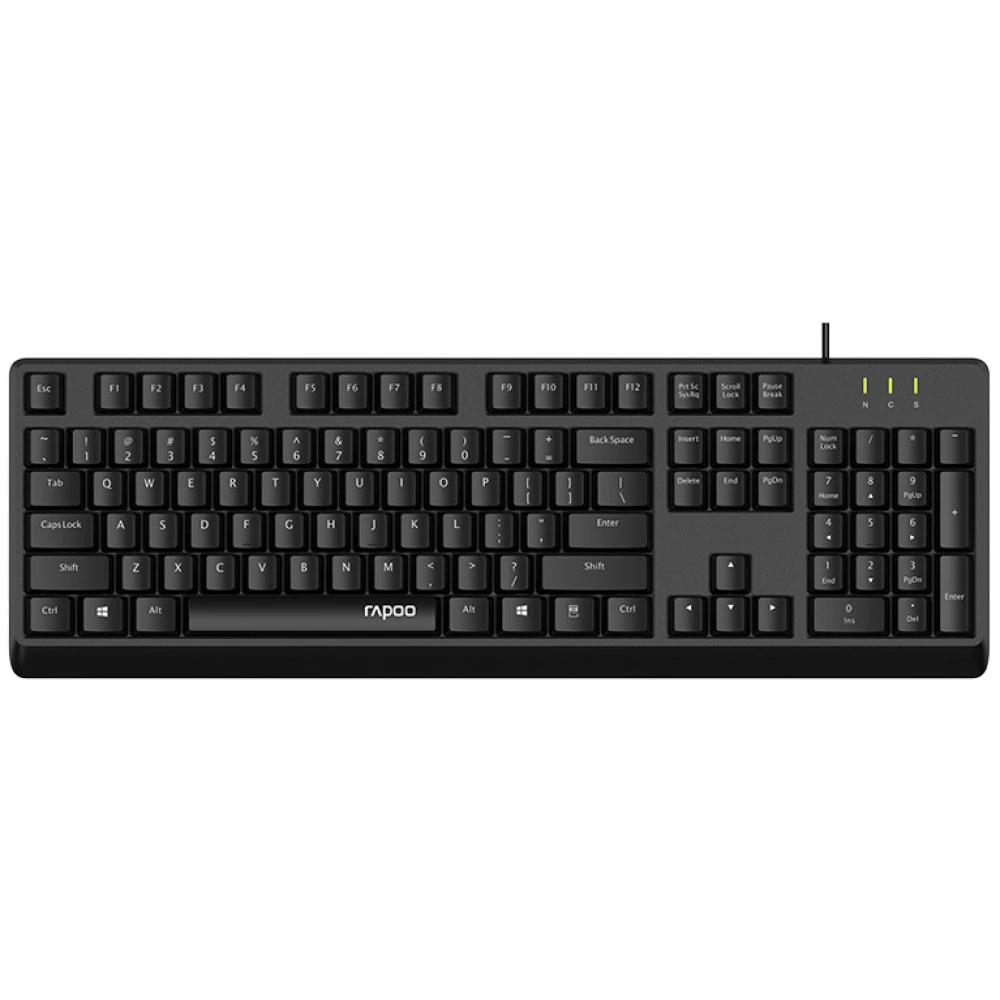Полноразмерная клавиатура проводная RAPOO NK1900 черного цвета имеет мембранную конструкцию, которая обеспечивает тихую и мягкую работу клавиш. Устройство содержит 104 клавиши, включая цифровой блок. Пластиковый корпус RAPOO NK1900 устойчив к механическим воздействиям и защищает внутренние компоненты от повреждений. Защита от попадания воды предотвращает повреждение клавиатуры при случайном пролитии жидкости. Клавиатура подключается к любому компьютеру или ноутбуку через стандартный порт USB. Светодиодный индикатор позволяет контролировать состояние клавиатуры и предупреждает о возможных проблемах.