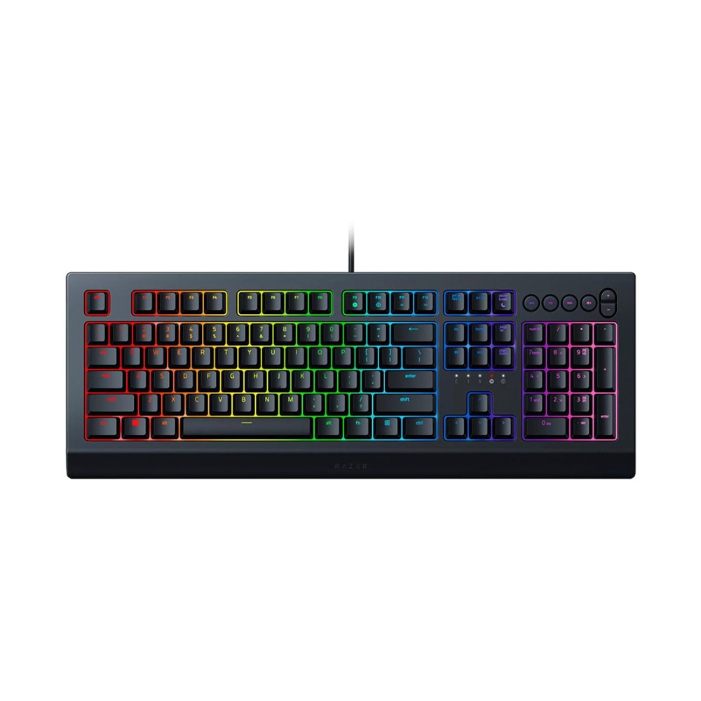 Клавиатура Razer Cynosa V2 с проводным подключением отлично подходит для самых долгих и экспрессивных игровых сетов. Модель с частотой опроса 1000 Гц состоит из 110 клавиш с мембранным механизмом нажатия. Среди них предусмотрено 6 дополнительных кнопок для управления мультимедиа, а также программируемые. Все клавиши обладают бесшумным ходом и многоцветной подсветкой.