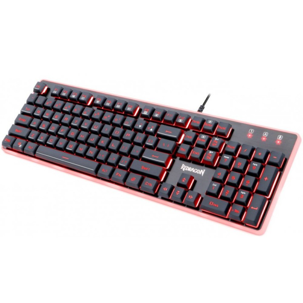 Особенность Redragon Dyaus состоит в поддержке красной подсветки клавиш, что способствует созданию особой атмосферы погружения в игру. Клавиатура поддерживает аппаратную блокировку клавиши WIN при загрузке игры. На клавиши нанесена лазерная гравировка, которая не стирается. Вы можете нажимать сразу несколько клавиш, ведь клавиатура распознает нажатие 19 клавиш одновременно. Корпус устройства выполнен из металла и предусматривает влагостойкую конструкцию.