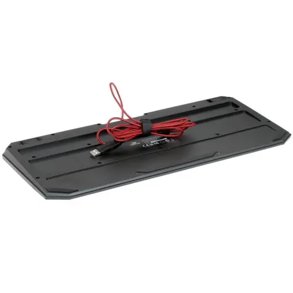 Клавиатура Redragon Karura 2 является полноразмерной, что обеспечивает ее многофункциональность. Есть клавиша функции (Fn), с помощью которой можно быстро выполнять некоторые системные настройки. Корпус клавиатуры довольно устойчив на поверхности стола за счет специальных прорезиненных накладок на ее днище. Также в ее конструкции имеются выдвигающиеся ножки, что предусматривает возможность установить ее в определенном положении. Для подключения клавиатуры к компьютеру используется длинный (1.8 м) кабель в тканевой оплетке с USB-коннектором.
