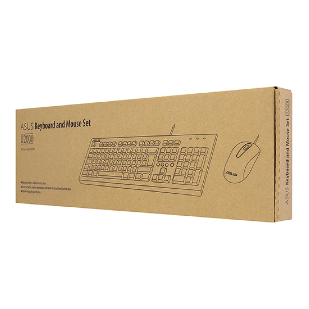 ASUS U2000 – это комплект из клавиатуры и мыши, которые отличаются красивым дизайном и эргономичной формой. Клавиатура снабжена специальными клавишами для управления громкостью звука и перехода в экономичный спящий режим, а мышь обладает разрешением в 1000 точек на дюйм. Этот элегантный и надежный в работе комплект придется по вкусу любому пользователю.