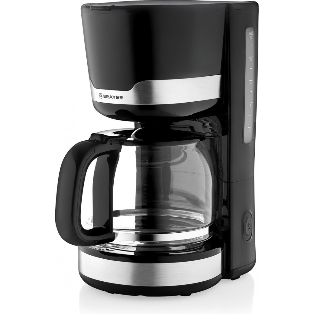 Капельная кофеварка BRAYER BR1120 черного цвета — это удобная модель для приготовления кофе дома или в офисе. При мощности 1000 Вт она быстро нагревает воду и позволяет готовить до 1,5 л кофе за один раз. Кофеварка использует молотый кофе и оснащена одноразовым фильтром. Модель оборудована противокапельной системой для чистоты при эксплуатации и автоотключением для безопасности. Корпус выполнен из пластика с теплоизоляционной ручкой, а индикаторы показывают включение устройства и уровень воды. Функций для приготовления капучино, регулировки жесткости воды или подогрева чашек нет. Дисплей отсутствует.