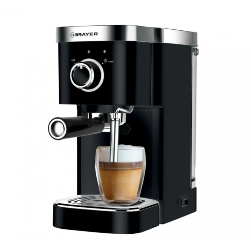 Кофеварка BRAYER BR1100 — рожковая модель для приготовления эспрессо и капучино. Оснащена металлическим рожком и бойлерным нагревателем мощностью 1500 Вт. Объем резервуара для воды составляет 1,25 л, максимальное давление 15 бар. Возможность приготовления капучино ручная, есть функция быстрого пара. Подогрев чашек и одновременное приготовление двух чашек обеспечивают комфортное использование. Корпус пластиковый, индикаторы уровня воды и включения, автоматическое отключение. Модель не имеет встроенной кофемолки и дисплея, подача горячей воды отсутствует, противокапельная система отсутствует.