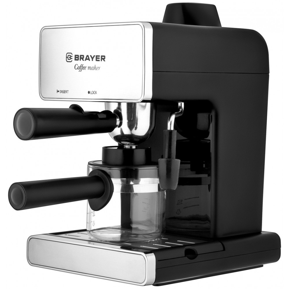 Рожковая кофеварка BRAYER BR1103 в сочетании серебристого и черного цветов — компактное и функциональное решение для приготовления ароматного кофе дома. Устройство оснащено термоблоком мощностью 950 Вт и имеет небольшой резервуар для воды объемом 0,24 л. Максимальное давление 4 бар обеспечивает сохранение насыщенного вкуса и аромата кофе.