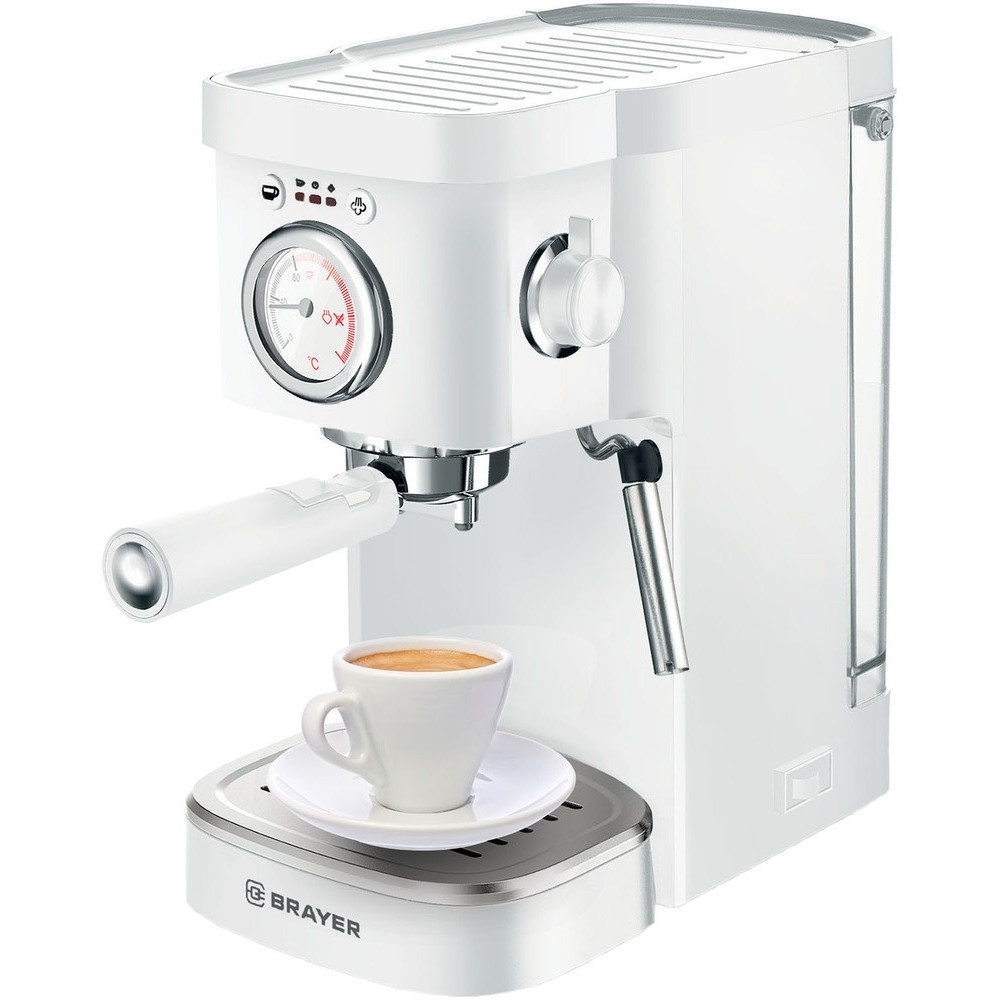 Кофеварка BRAYER BR1106 — это элегантное и функциональное устройство для приготовления ароматного кофе дома или в офисе. Модель выполнена в стильном белом цвете и оснащена мощным нагревателем на 1100 Вт, обеспечивающим быстрое приготовление напитков. Благодаря максимальному давлению 15 бар кофеварка гарантирует насыщенный вкус и идеальную кремовую пенку.