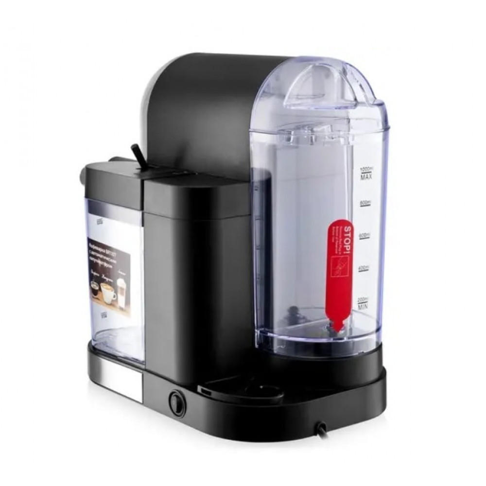 Кофеварка обладает мощностью 1500 Вт и оборудована резервуаром для воды объёмом 1,0 л, что позволяет готовить несколько порций кофе подряд. Функция приготовления капучино расширяет возможности устройства, а система автоотключения обеспечивает безопасность при эксплуатации.