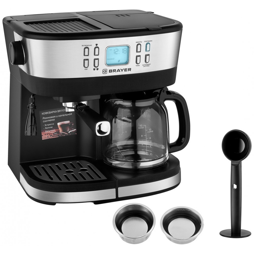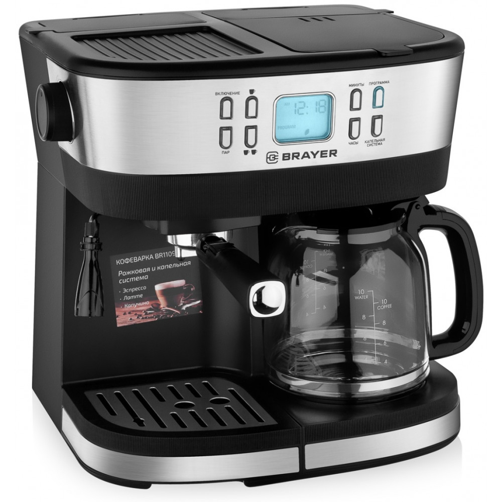 Кофеварка BRAYER BR1109 выполнена в стильном серебристом цвете и относится к рожковым кофеваркам с автоматическим приготовлением эспрессо. Модель рассчитана на использование молотого кофе и обладает мощностью 2100 Вт, что обеспечивает быстрое и равномерное приготовление напитка.