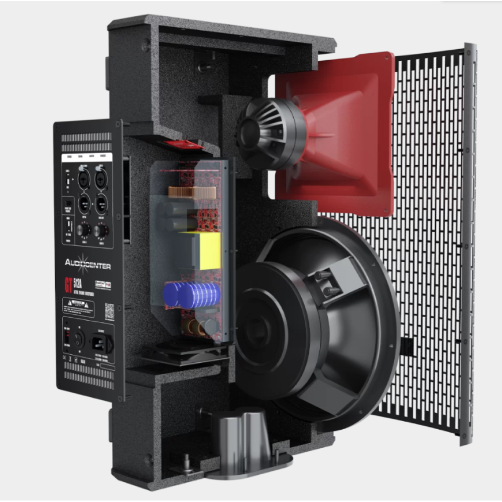 Audiocenter GT515A — это активная полнодиапазонная акустическая система с DSP-управлением, предназначенная для использования в качестве FOH (Front-of-House) или мониторной системы. Она оснащена 15-дюймовым низкочастотным динамиком с 3-дюймовой катушкой и 1-дюймовым высокочастотным драйвером с 1,75-дюймовой катушкой. Система обеспечивает частотный диапазон от 42 Гц до 20 кГц и максимальный уровень звукового давления 136 дБ. Встроенный усилитель класса D с пиковым выходом 2200 Вт и DSP с частотой дискретизации 48 кГц обеспечивают высокое качество звука и надежность. Система имеет два комбинированных входа (XLR и 6,35 мм моно-джек), а также два выходных XLR-разъема для каскадного подключения. Корпус выполнен из фанеры с обработкой ЧПУ, что обеспечивает прочность и долговечность устройства. Система также оснащена поворотным рупором с углом 90° × 60°, что позволяет адаптировать акустическое
