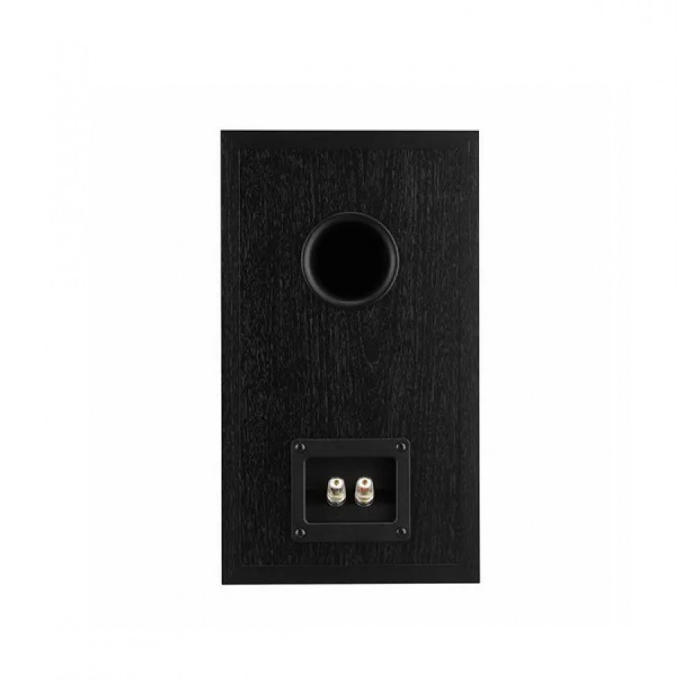 Корпус выполнен из MDF с отделкой «чёрный ясень», что придает акустике элегантный и современный вид. Фазоинвертор расположен на задней панели, что позволяет эффективно использовать пространство и улучшить басовый отклик.