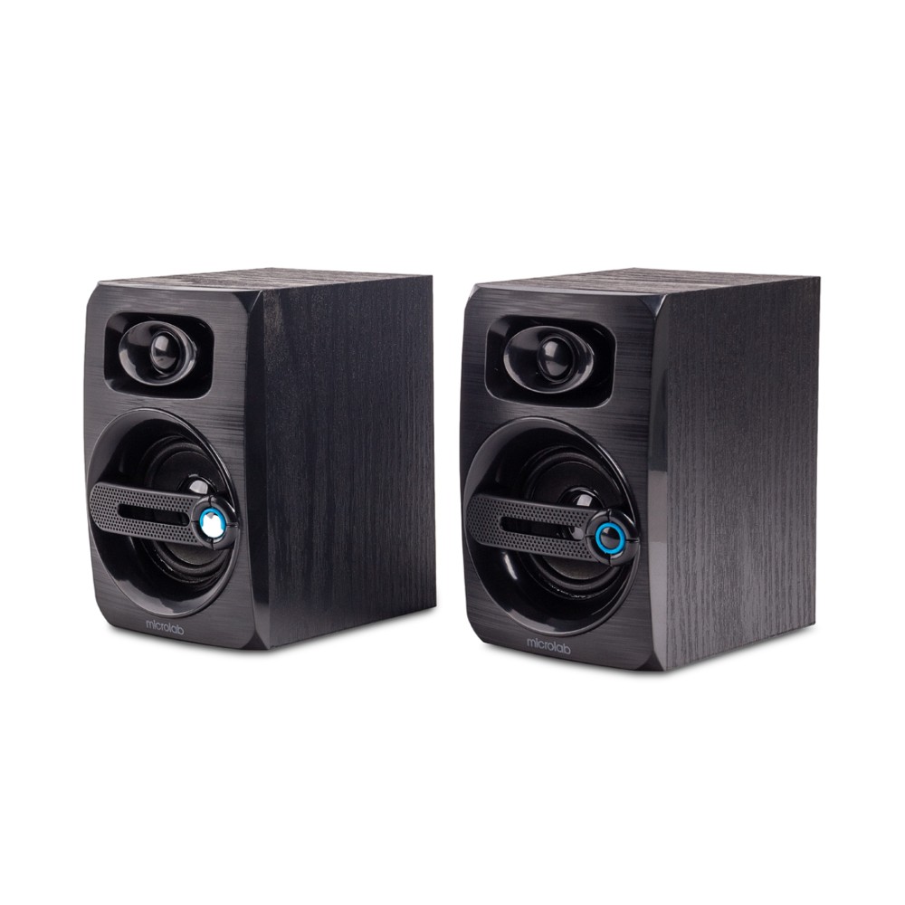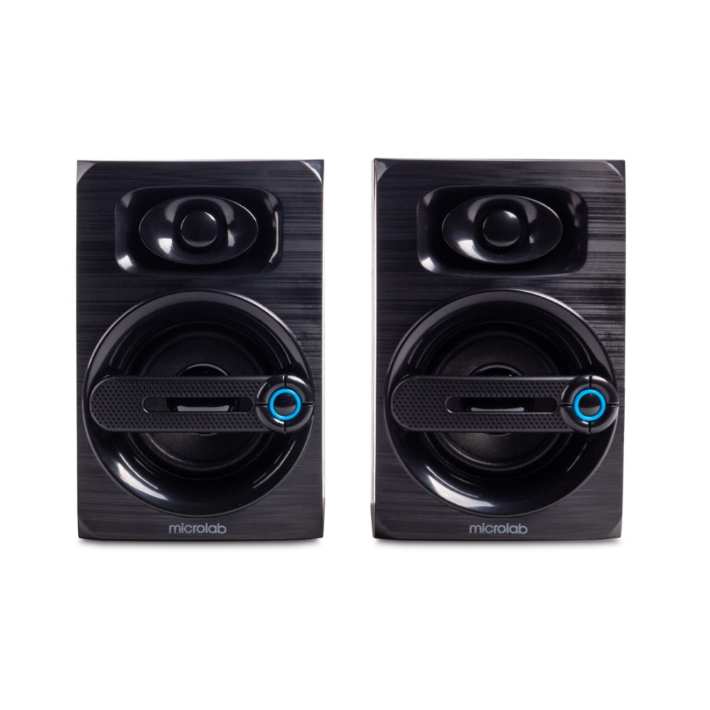 Широкополосный мембранный динамик и технологичный дизайн в глянцевом пластике – главные отличительные особенности данной акустической системы. Компактные размеры системы Microlab B23 позволяют использовать систему не только на небольшом компьютерном столе, но и брать с собой в дорогу для быстрого подключения к ноутбуку. Для устойчивости и снижения вибрации в нижней части корпуса имеются небольшие прорезиненные вставки. Несмотря на свой размер, звучание этих колонок громкое и сбалансированное. Регулятор громкости расположен в верхней части корпуса активной колонки, что делает управление устройством более комфортным. Еще одно преимущество – питание через USB: отличный вариант для тех, кто ценит возможность быстрого подключения, высокое качество звука и заботится о своём кошельке.