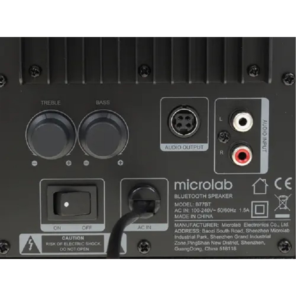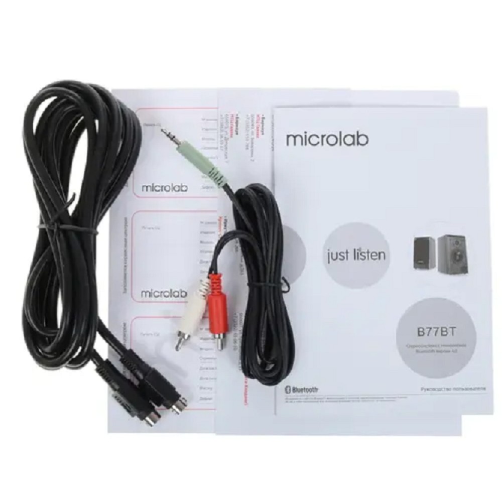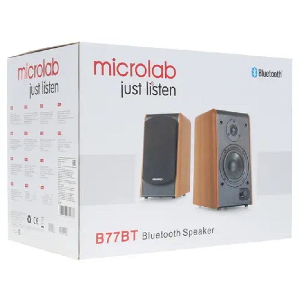 Microlab B77BT - современная акустическая система с элегантным дизайном и поддержкой беспроводной связи с источником звука. Функция Bluetooth 4.0 - высокое качество передаваемого сигнала в беспроводном режиме и поддержка практически всех современных форматов аудиофайлов (MP3, WMA, AVI, APE, FLAC и др.).Безусловным преимуществом является чистое звучание и впечатляющая мощность (60 Вт), которые реализованы благодаря современной электронике и качеству сборки. Удобное расположение регулятора громкости на передней панели. Регуляторы высоких и низких частот на тыльной стороне активного сателлита для настройки звучания под различные жанры и индивидуальные предпочтения пользователя. Рельефные ножки из прорезиненного материала обеспечивают устойчивость системы на гладкой поверхности.