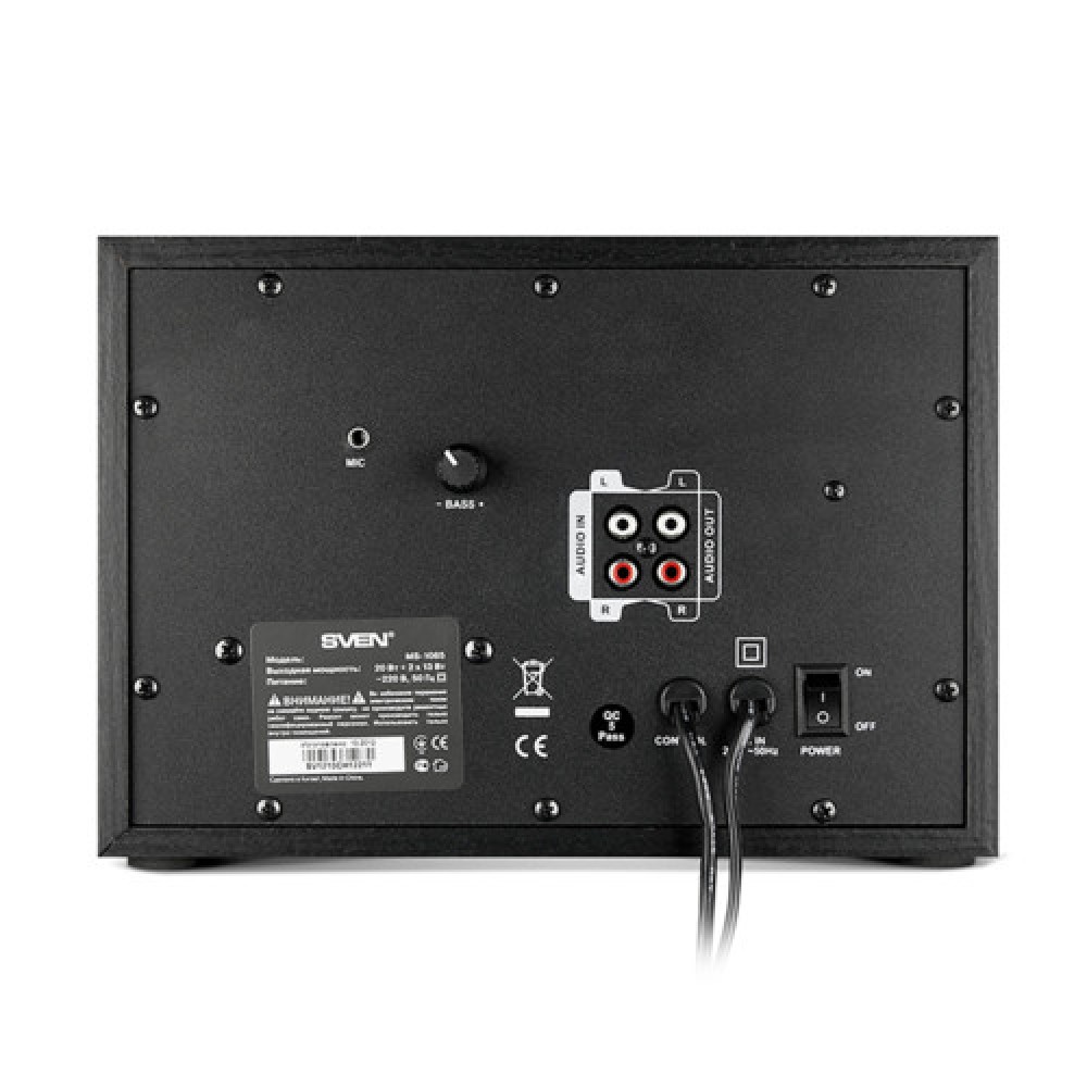 В линейке «одноклассников» модель выделяет ее дизайн. SVEN MS-1085 – это пример минимализма, столь модного сегодня. Корпус сабвуфера и сателлитов выполнен из дерева и имеет черный цвет. Основой дизайнерской композиции является окружность серебряного цвета, расположенная на лицевой стороне сабвуфера. Она визуально «перекликается» с динамиками сателлитов, которые также имеют серебристую отделку. Четкость линий и лаконичность во внешнем виде новинки передает неповторимый образ и изысканность SVEN MS-1085. Акустика 2.1 будет выигрышно смотреться в любой обстановке: как дома, так и в офисе.