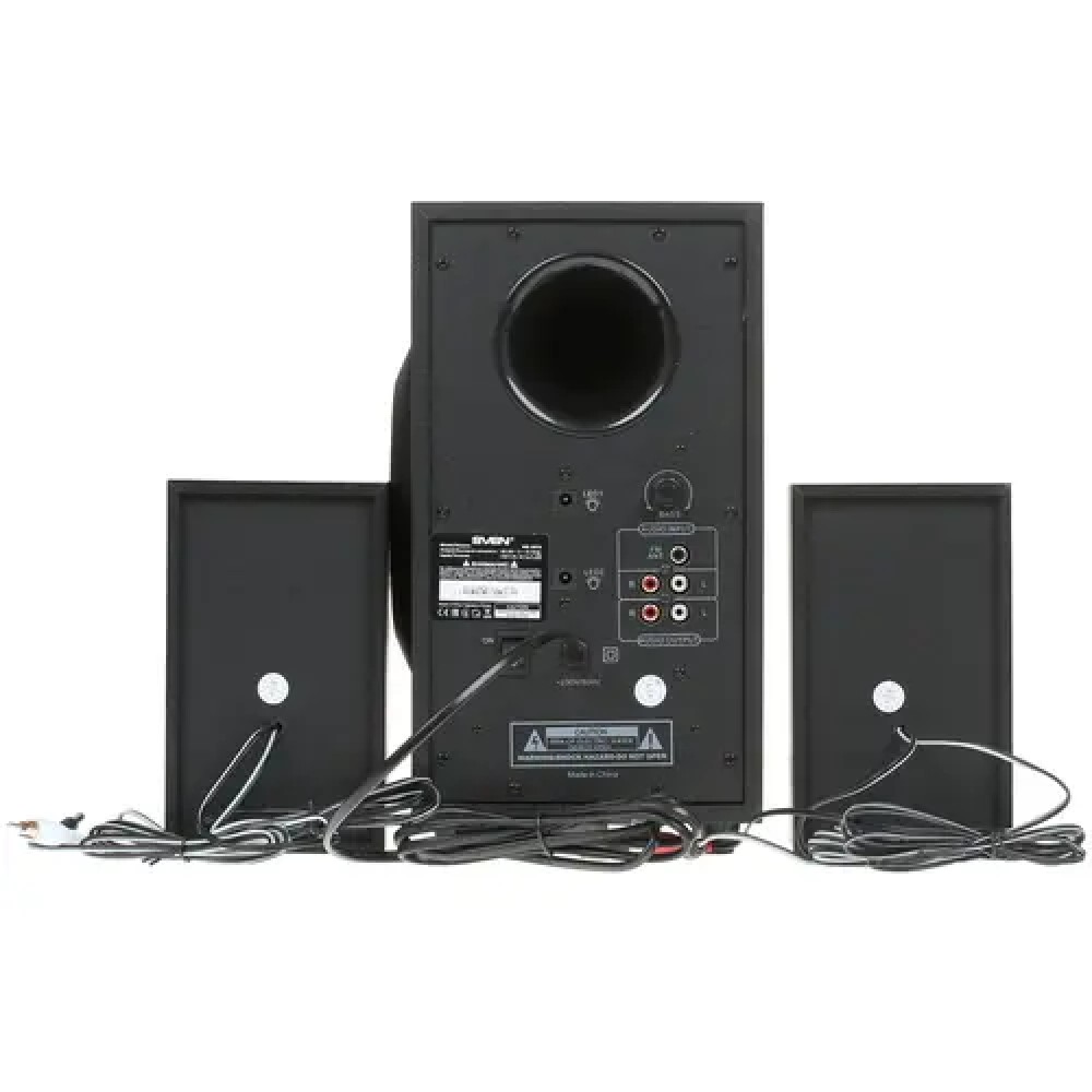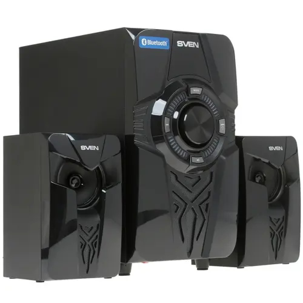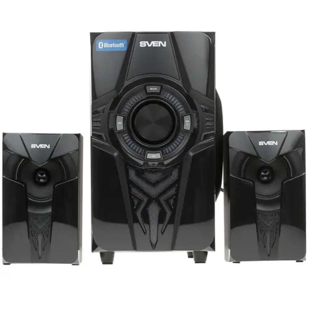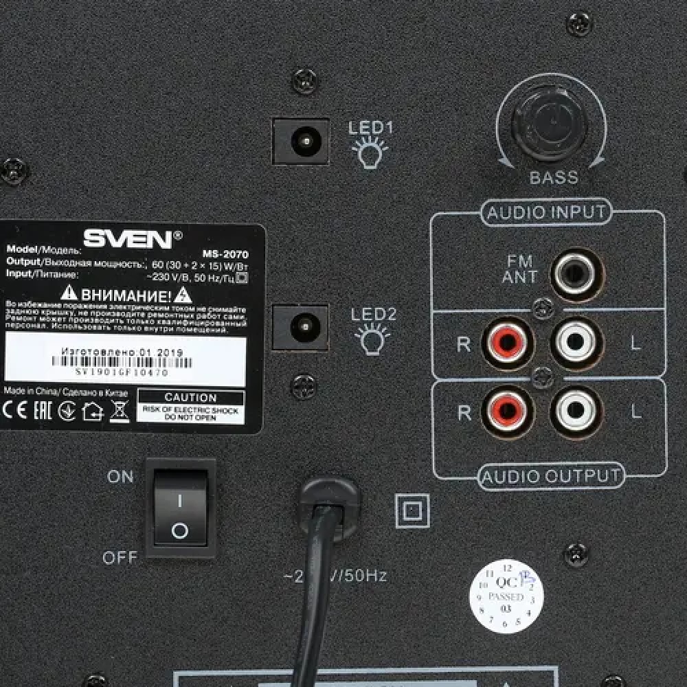Колонки 2.1 SVEN MS-2070 можно интегрировать со звуковоспроизводящим устройством за счет модуля Bluetooth либо проводного RCA-соединения. Для карт памяти и флеш-накопителей имеются интерфейсы USB Type A и SD. Также в конструкции предусмотрен тюнер FM. Управлять колонками можно при помощи пульта ДУ. Активный сабвуфер модели мощностью 30 Вт заключен в корпус из МДФ, глушащей вибрации. Дополняют конфигурацию набора светодиодный дисплей и подсветка.